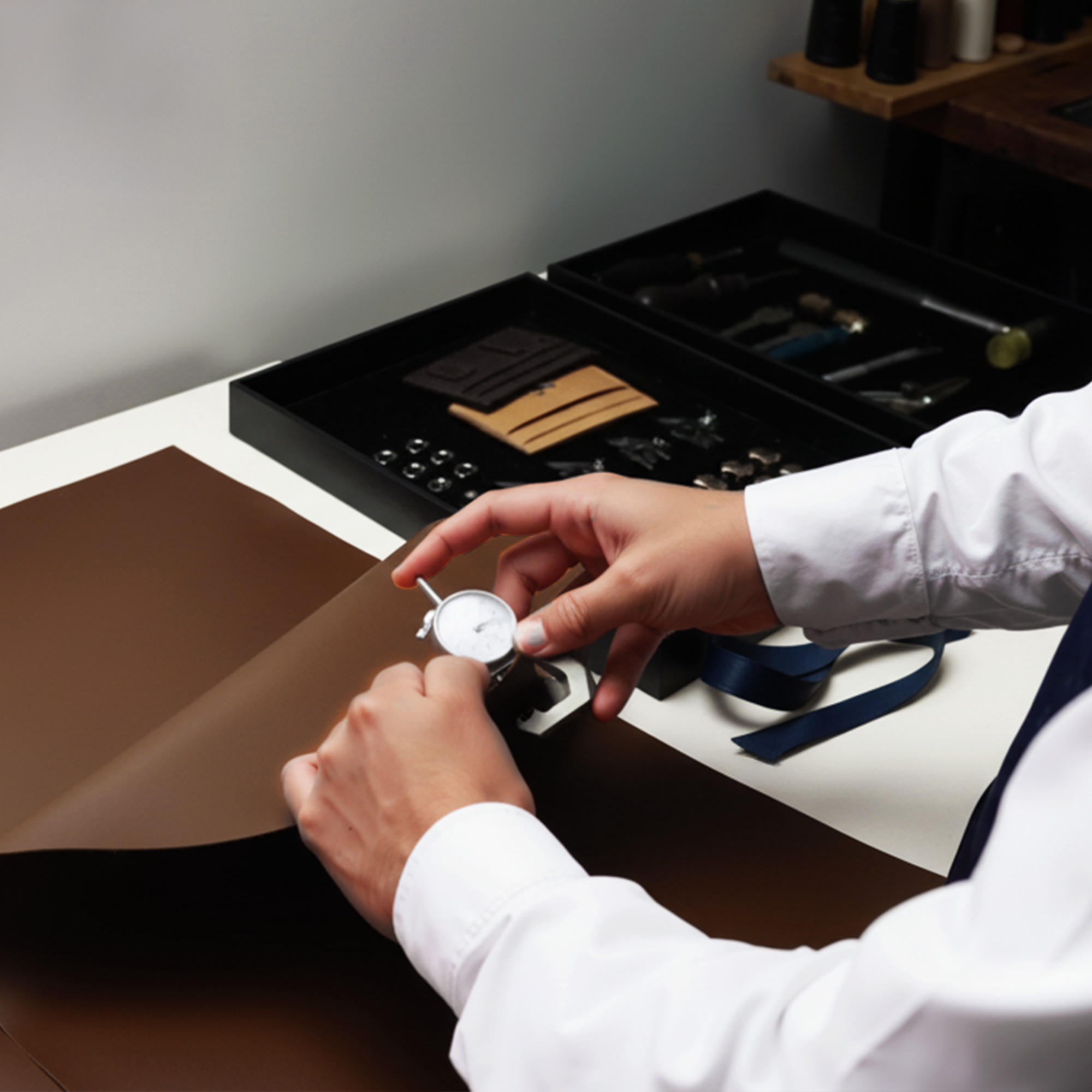 Hver enkelt model fremstilles efter bestilling i vores eget værksted, hvilket gør det muligt at sikre fuld opmærksomhed på hver eneste detalje og samtidig minimere spild. Fra skæring af læderet til samlingen af strukturen og malingen af kanterne – hvert trin udføres i hånden med enestående præcision.